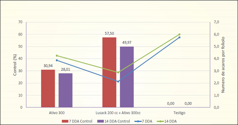 Efecto de ACTIVO Para el control de Tetranychusu en Cultivos de Soya a los 7 y 14 DDA Zona Norte, CAT Colonia PiraiPirai